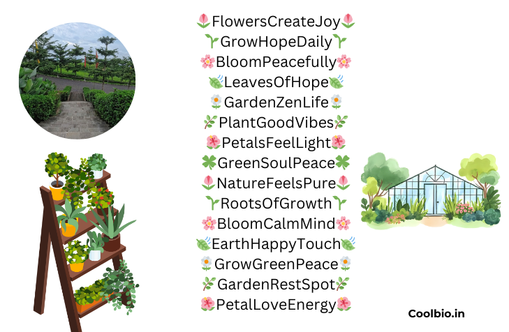 Modern garden captions highlight peace, growth, and natural beauty. Words inspired by petals, sunlight, and fresh air connect perfectly with today’s aesthetic social media trends.
